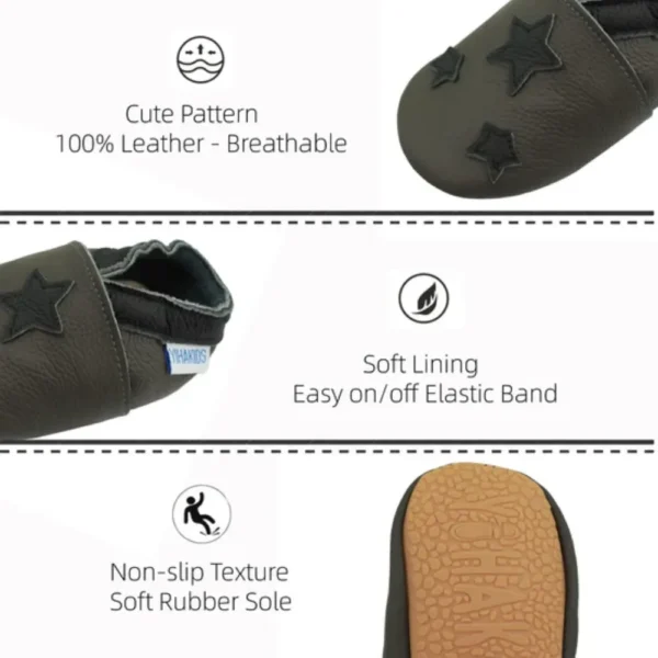 Parfaits pour la maison, la crèche ou les premiers pas, les chaussons en cuir bébé YIHAKIDS allient style, douceur et sécurité.
