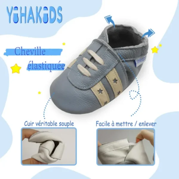 Parfaits pour la maison, la crèche ou les premiers pas, les chaussons en cuir bébé allient style, douceur et sécurité.