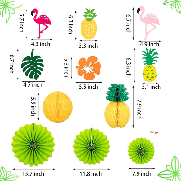Ce kit complet de décoration de fête tropicale est parfait pour créer une atmosphère colorée et joyeuse en toute occasion. Il comprend tout ce dont vous avez besoin pour décorer votre fête facilement et à un prix abordable. Idéal pour les fêtes de plage, les fêtes de piscine, les barbecues, les anniversaires, les remises de diplômes, les baby showers, Noël, Thanksgiving et bien d’autres encore. Comprend de magnifiques fleurs en papier, des boules en nid d’abeille et des lanternes à suspendre au plafond ou sur les tables.