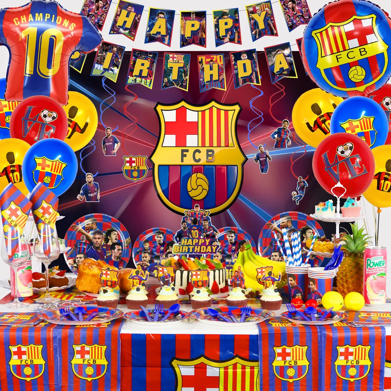 Le set comprend 91 pièces. Vous décorez facilement votre espace et plongez vos invités dans l’univers du club catalan. Chaque élément affiche fièrement les couleurs emblématiques du Barça, pour un anniversaire mémorable.